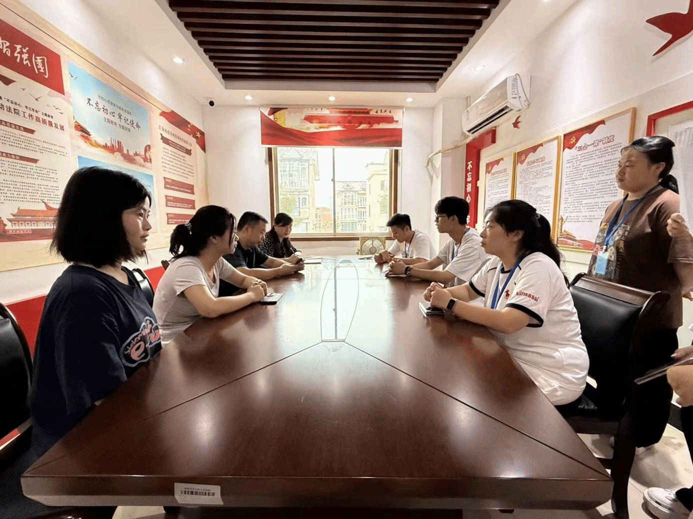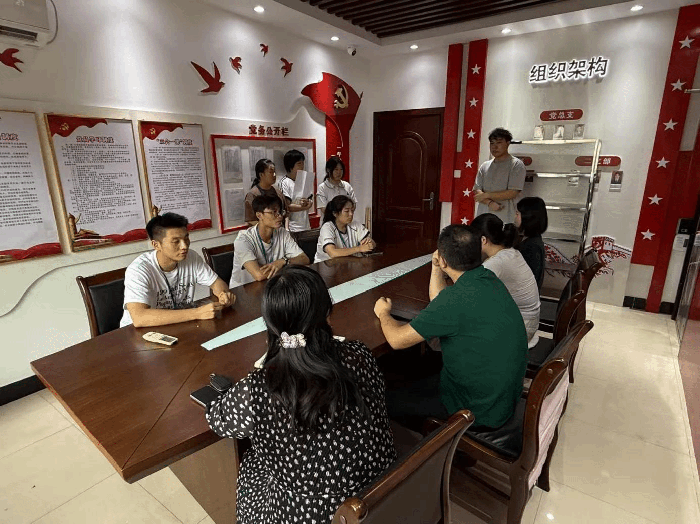 得知学院老师前来探望,正在忙碌的实习同学们难掩激动之情,纷纷来到会议室与老师见面。大家围坐在一起,脸上满是见到老师的兴奋与温暖,迫不及待地想要分享实习以来的点点滴滴。