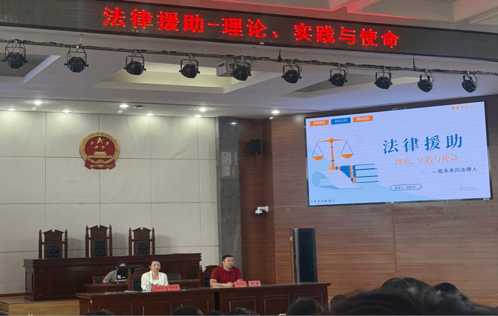 随后,欧阳芳主任结合自身经历,以清洁工被无故辞退、大学生兼职纠纷、胡女士维权三个案例为例,深入讲解了法律援助在保障弱势群体合法权益中的重要作用。她强调,法律援助体现国家责任与人文关怀,是推进社会公平正义的重要制度,并寄语同学们积极投身公益,勇担法律人的社会使命。讲座最后,杨荣主任总结指出,法律不仅是专业知识,更是追求公平与正义的信仰,希望同学们将所学与社会需求紧密结合,在实践中不断提升综合素质,成为新时代有理想、有担当的法治人才。