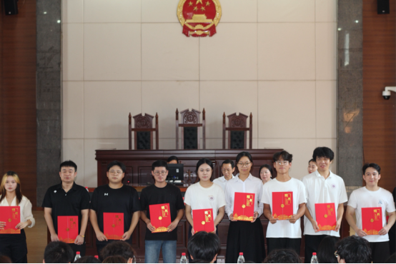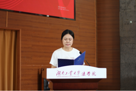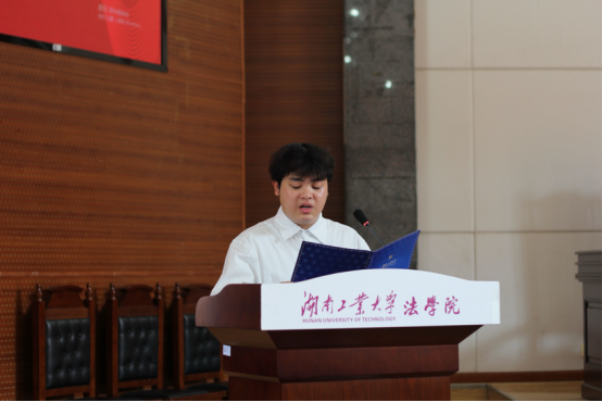 学生代表孙铖、刘静宜先后发言,表达了全体同学“以专业服务社会、以实践锤炼本领”的决心,承诺将严守纪律、精研法规、倾情奉献,展现湖工大法学院学子的责任与风采。
