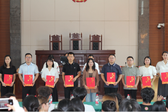 仪式上,唐淑艳副院长为10名教师颁发“地方立法宣讲专家”聘书,各带队教师为10名学生颁发“地方立法宣讲员”聘书,标志着宣讲团正式组建并投入工作。